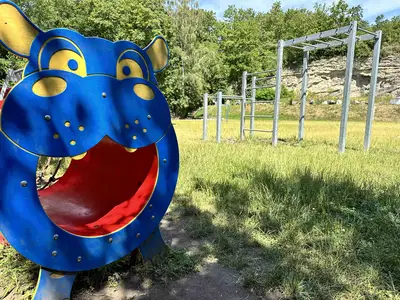 Obrovské hřiště kousek od zastávky vlaku, kde se mohou děti vybláznit a zároveň se něco naučit. Součástí hřiště je totiž geologická expozice. Najdete zde 43 velkých bloků hornin, které se vyskytují v Kutné Hoře a okolí.