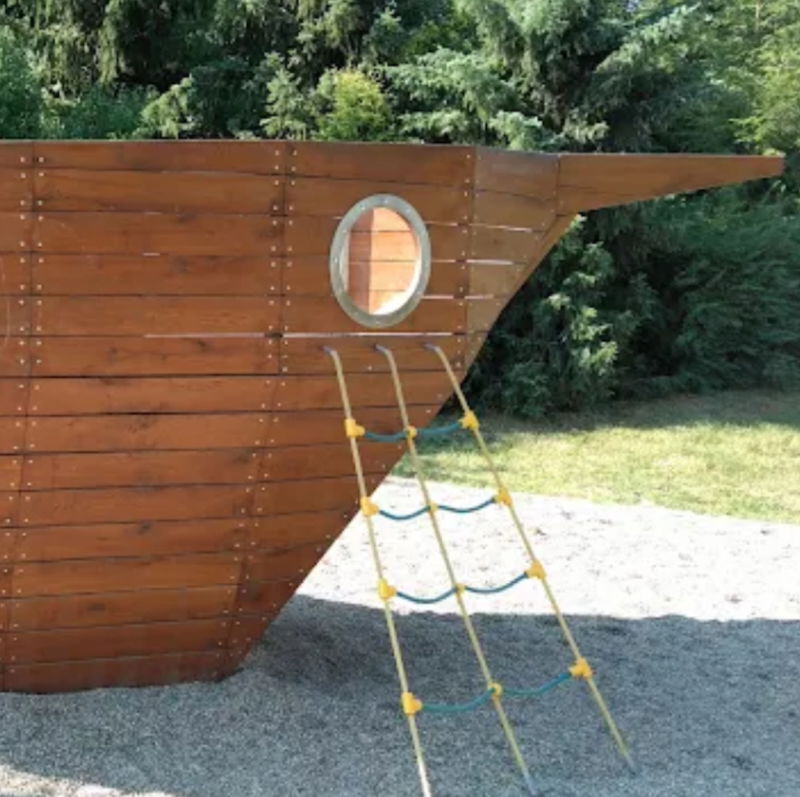 Menší dětské hřiště s námořní tematikou v centru Luhačovic.