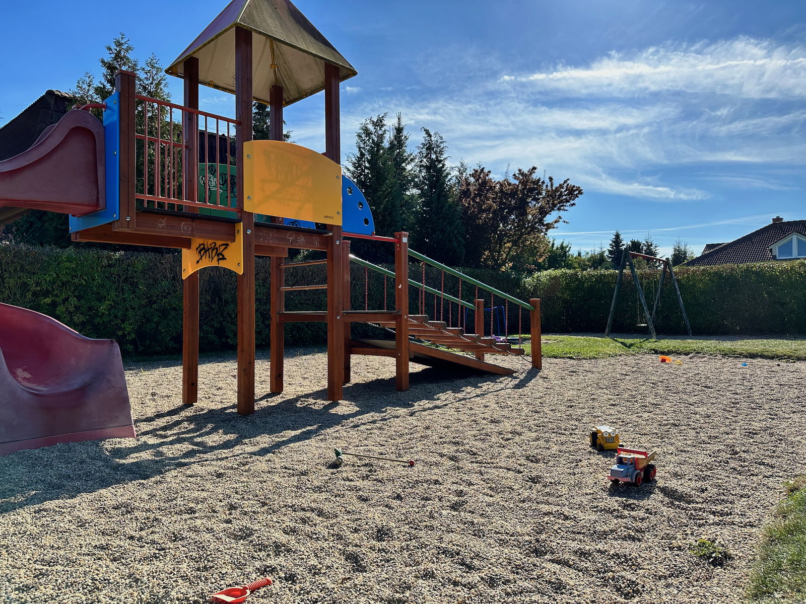 Menší, novější hřiště, které najdete u poměrně rušné cesty. Oplocení hřiště je ale po celé jeho ploše, takže se o bezpečnost bát nemusíte. Hřiště nabídne všechny možné prvky, které děti zabaví. Klasické pískoviště, prolézačky, houpačky, ale i menší kolotoč. Pro dospělé tu najdete i pár laviček k odpočinku. V okolí moc příležitostí k občerstvení není, takže doporučujeme vzít si svoje. Stejně tak na hřišti nenajdete příliš stínu, odpolednímu slunci se tedy raději vyhněte.
