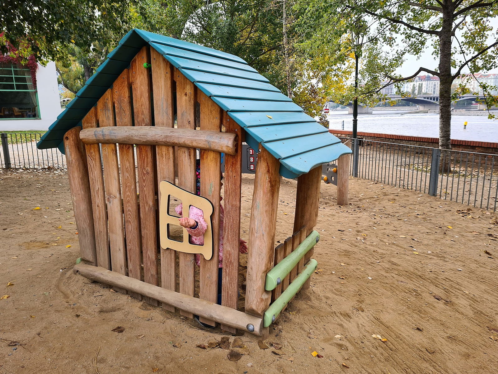 Dětské hřiště v centru Prahy na Slovanském ostrově.