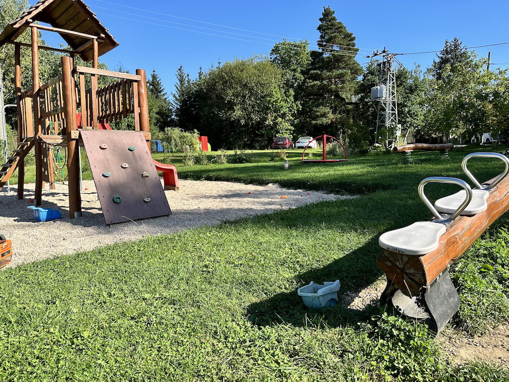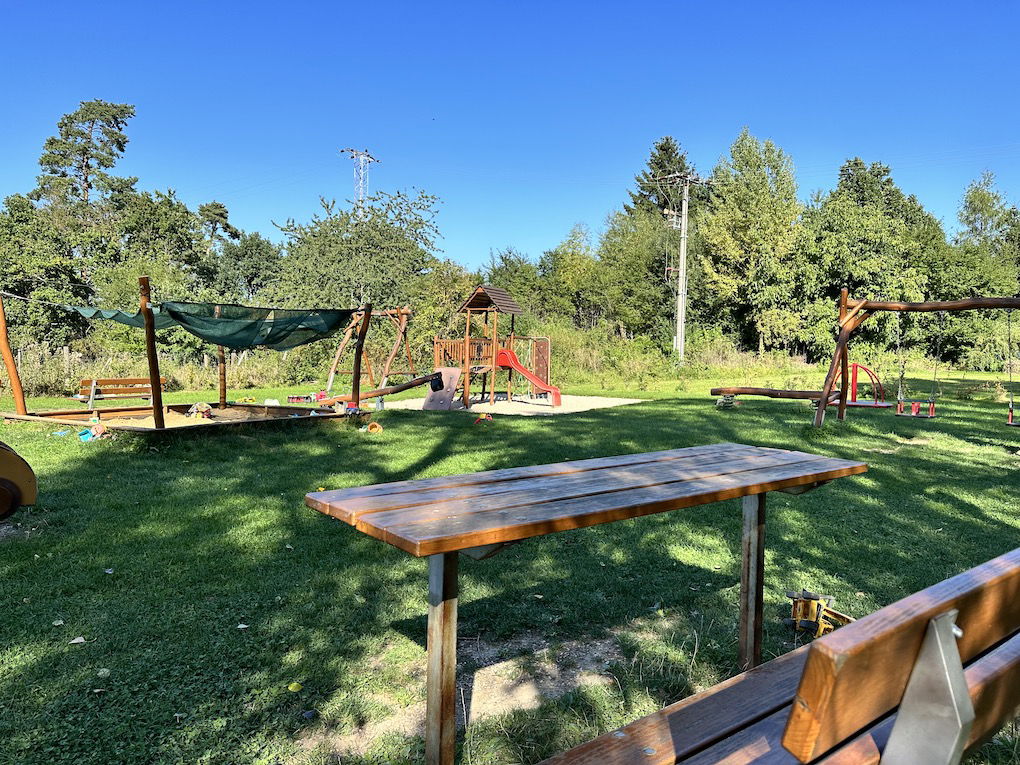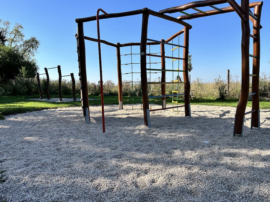 Krásné, udržované hřiště, doslova plné herních prvků: pískoviště, houpačky a lanová dráha. Samozřejmě nesmí chybět prolézačky, ale najdete zde i posezení pro dospělé. Hřiště je navíc v blízkosti stromů. V horku se tedy dá najít i nějaký ten stín. Málokdy je hřiště prázdné, o parťáky na hraní tak nouze nebude.