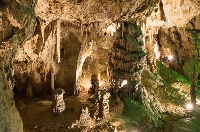Mezi nejkrásnější partie patří barevně nasvícený útvar Čarodějnice a Bambusový lesík...