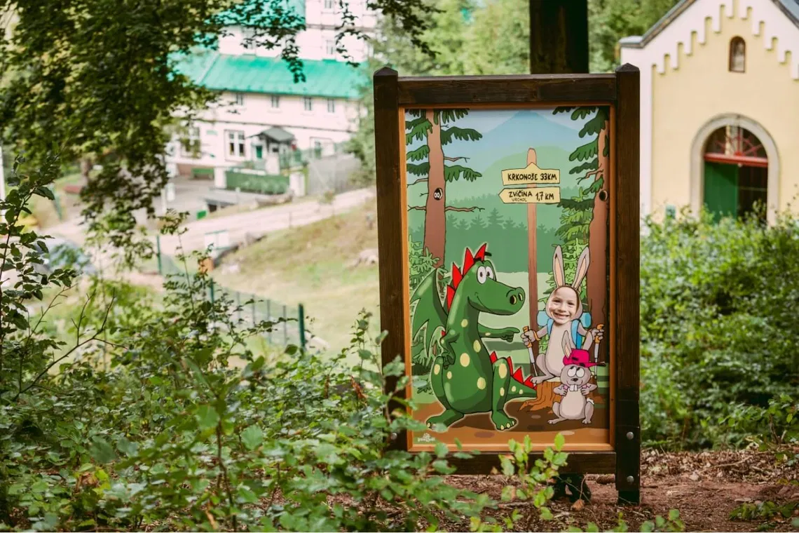 Stezka v půvabném Podkrkonoší na úpatí vrchu Zvičina vás seznámí se světem lesních zvířat. Začíná přímo u dvou významných objektů, které připomínají zajímavou historii bývalých Lázní pod Zvičinou, kapličky Panny Marie a Osmibokého pavilonku. A v hotelu Pod Zvičinou najdete také minifarmu, dětské hřiště i vnitřní hernu.