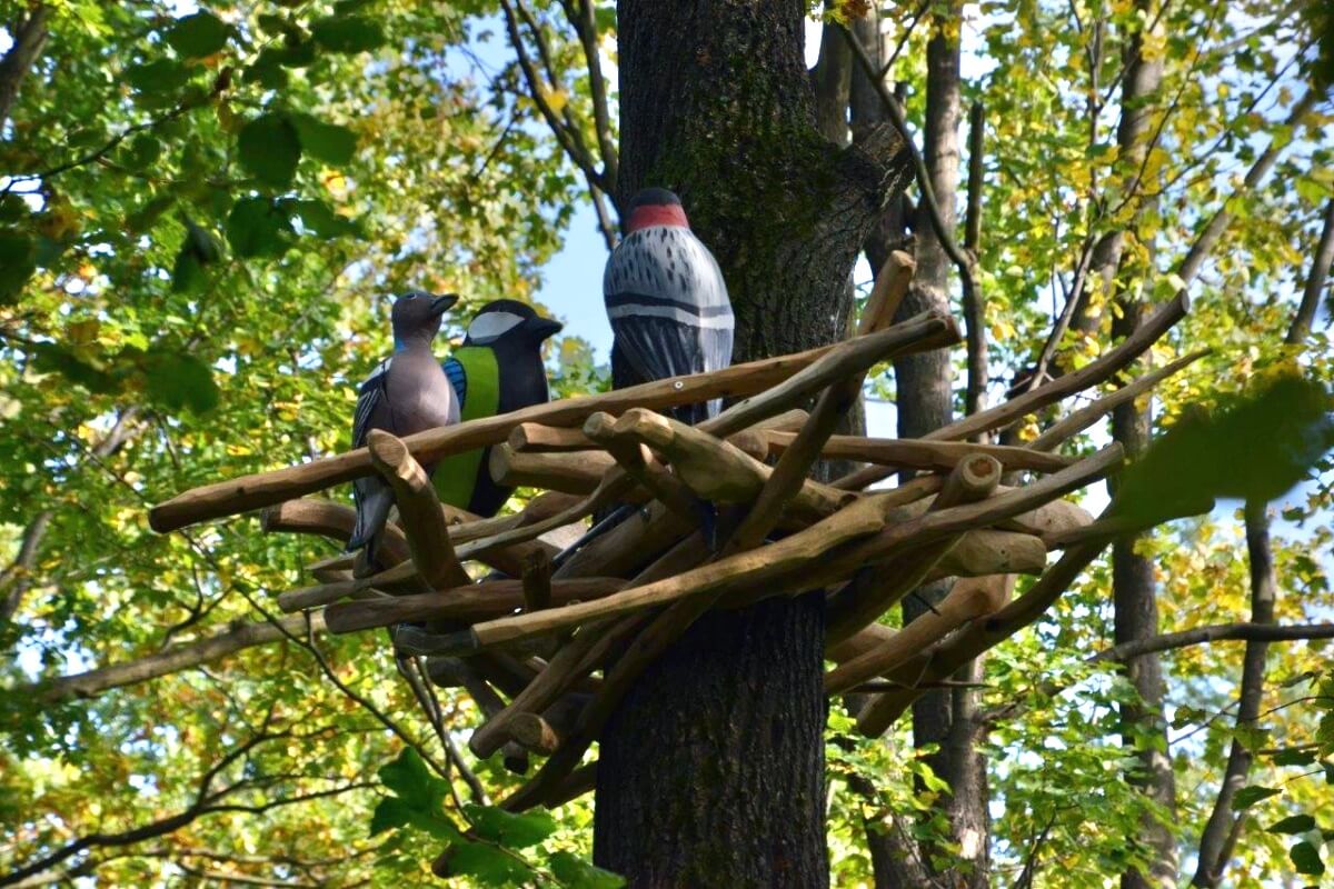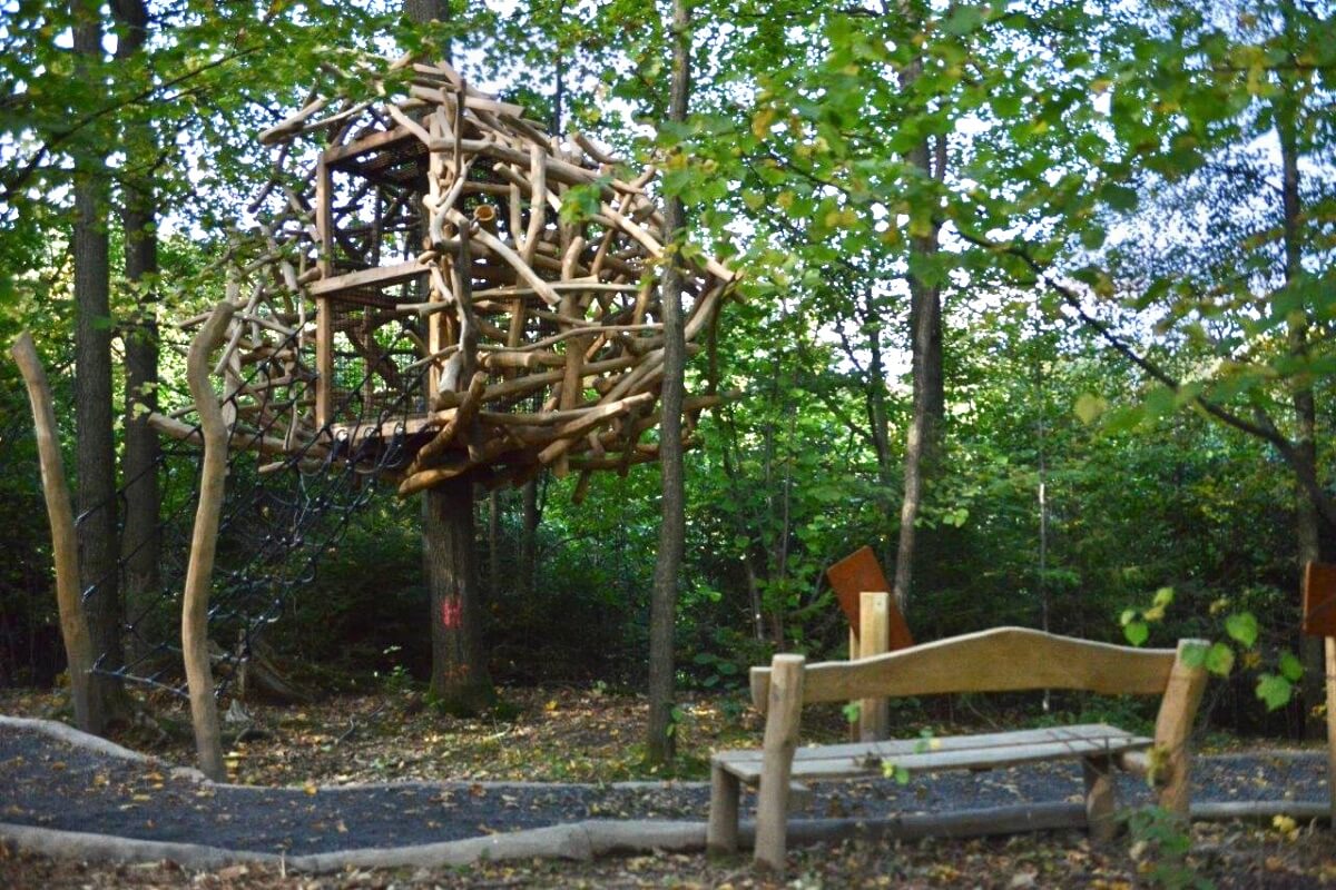 Jaký je výhled z ptačího hnízda? To si vyzkoušíte na Lesní stezce Vyhlídka. Najdete tu dvě dřevěná „ptačí hnízda“ s provazovými žebříky. Čeká vás výhled na okolní stromy a dřevěné modely ptáků na jejich kmenech.