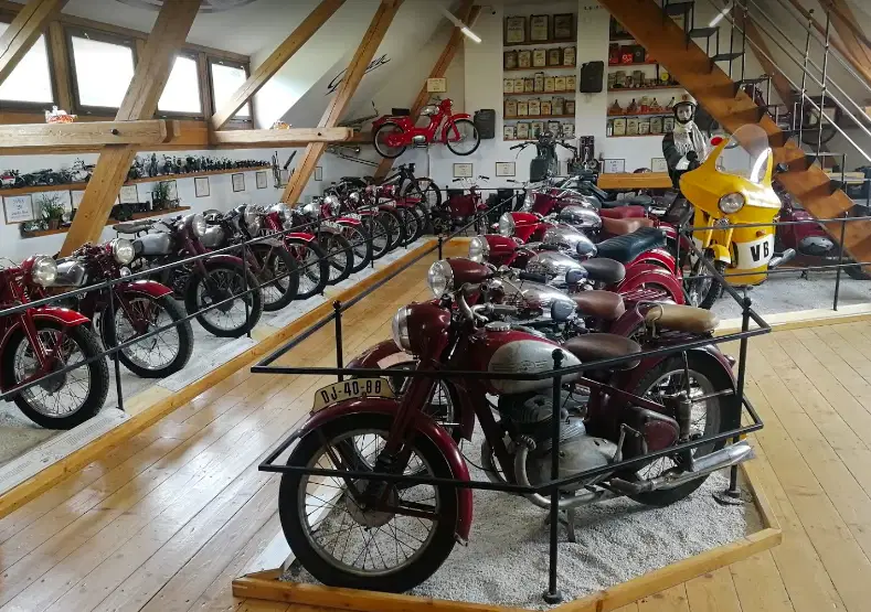 V muzeu se nachází unikátní sbírka 80 historických motocyklů, které se vyráběly v hojném počtu české i světové silnice v 30.-70. letech.