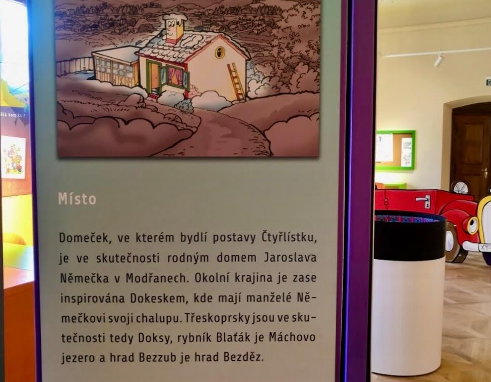 Kdo by neznal legendární Čtyřlístek? Ale tušili jste, že Fifinka, Bobík, Myšpulín a Pinďa mají dokonce své muzeum? Najdete ho přímo na zámku v Třeskoprskách, Nemůžete na mapě takové město najít? Mate pravdu, Třeskoprsky jsou ve skutečnosti Doksy.