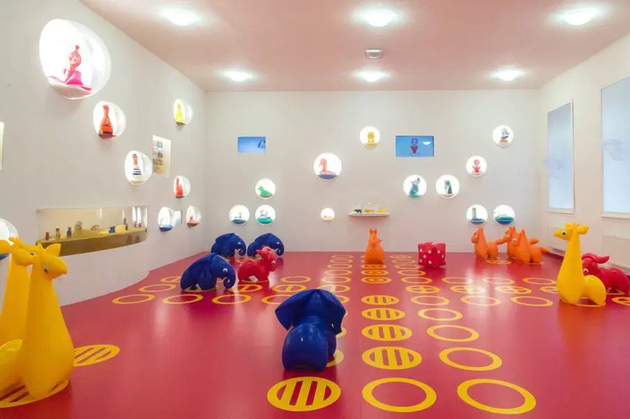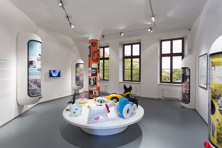 V Muzeu můžete zhlédnout stálou expozici Hřiště hraček, která vám hravou, interaktivní formou přiblíží legendární hračky designérky Libuše Niklové a Alfréda Kluga.