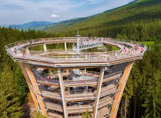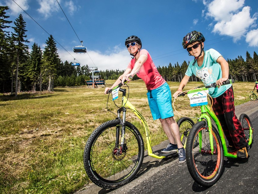 Lanovkou se nechte dovézt až na vrcholek Černé hory, odkud prosvištíte na koloběžce až do cílové rovinky. Zvolit si můžete jednu ze tří tras, které jsou rozdělené podle obtížností. Nejkratší žlutá měří 8 kilometrů a zavede vás ke Stezce korunami stromů v Janských lázních, kde si výlet na koloběžkách krásnou krajinou ještě zpestříte a uvidíte tu nádhernou přírodu z jiné perspektivy.