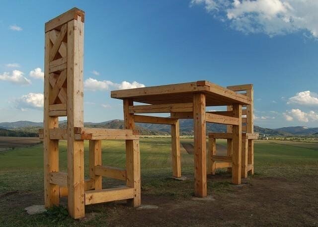 Na vrcholu Lánského vrchu v Rychlebských horách stojí v nadživotní velikosti stůl a dvě židle. Tato neobvyklá stavba je viditelná z dalekého okolí a zaujme každého na první pohled.