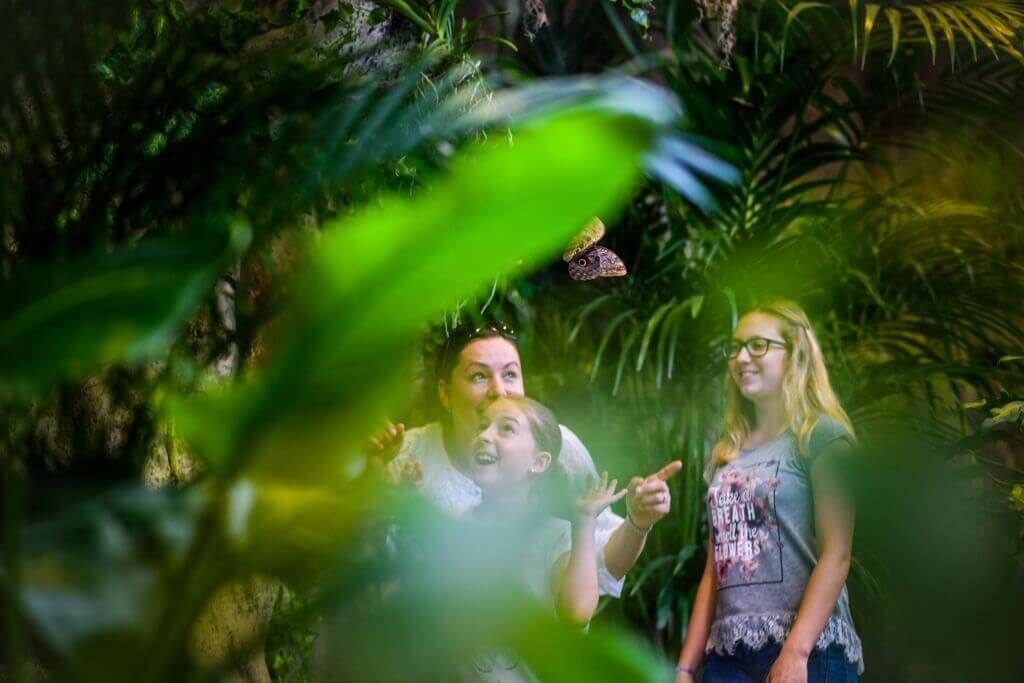 Když sestoupíte do suterénu největšího hračkářství v centru Prahy, který najdete v ul. Na Příkopě, narazíte na nenápadné dveře vedoucí do džungle. Interiér Motýlího domu napodobuje džungli v oblasti slavného kambodžského chrámu Angkor Vat a podobné jsou i podmínky, ve kterých tu motýli žijí: teplotu provozovatelé udržují na 30 °C a relativní vlhkost na 80 procentech.
