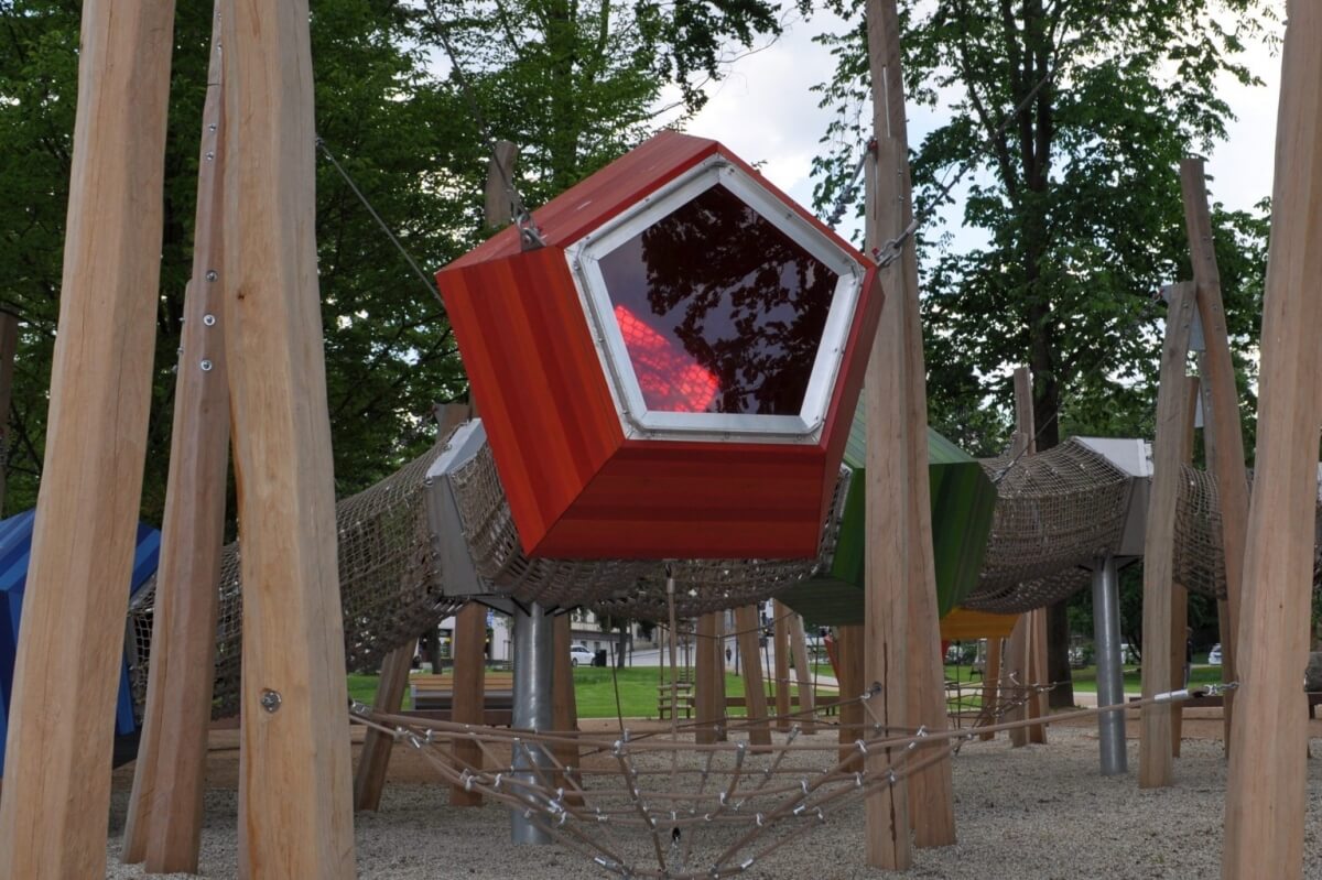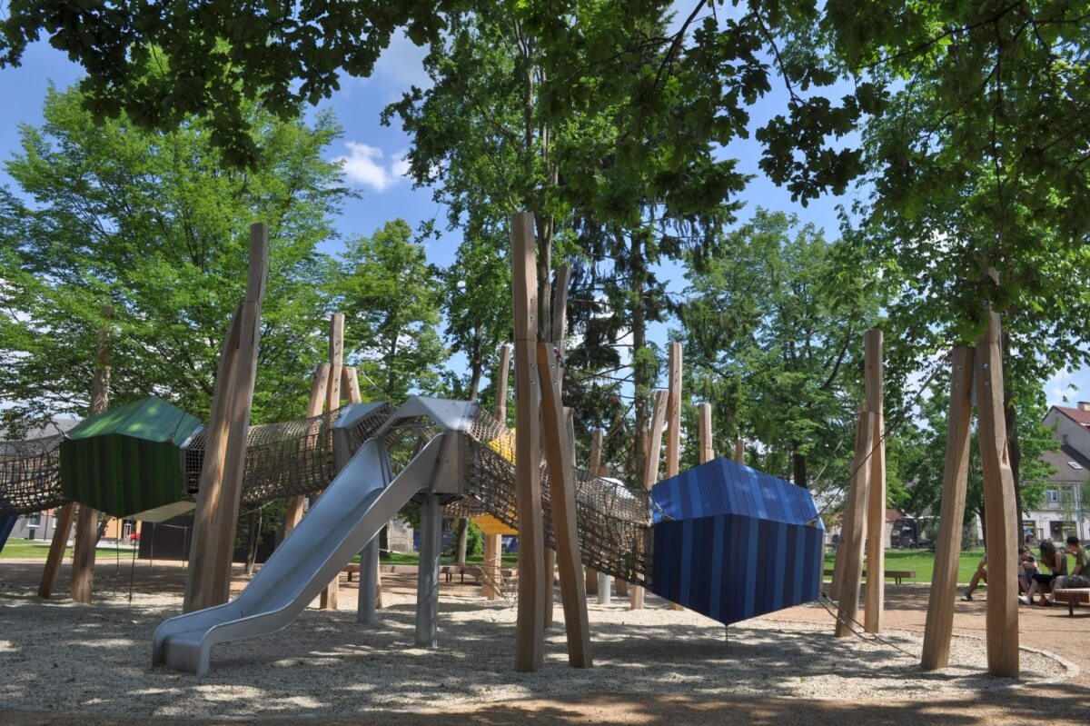 V parku Stromovka města Humpolec najdete futuristicky vypadající dětské hřiště, kde se vaše děti pořádně vyřádí. Těšit se můžete i na příjemnou kavárnu.