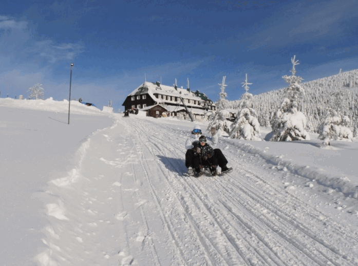 Nevíte co v zimně v Krkonoších podniknout s dětmi? Vezmete je na Sáňkařskou dráhu ve Špindlerově Mlýně. V místním občerstvení si můžete dát něco dobrého na zub nebo teplý čaj, který vás osvěží.