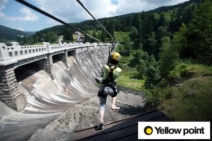 Dopřejte dětem netradiční zážitek a užijte si společně skvělý den v zábavním parku Yellow Point. Těšit se tu mimo jiné můžete i na 120 metrů dlouhou jízdu na laně nad Labskou přehradou, kterou se pak puberťáci budou chlubit na každém rohu.