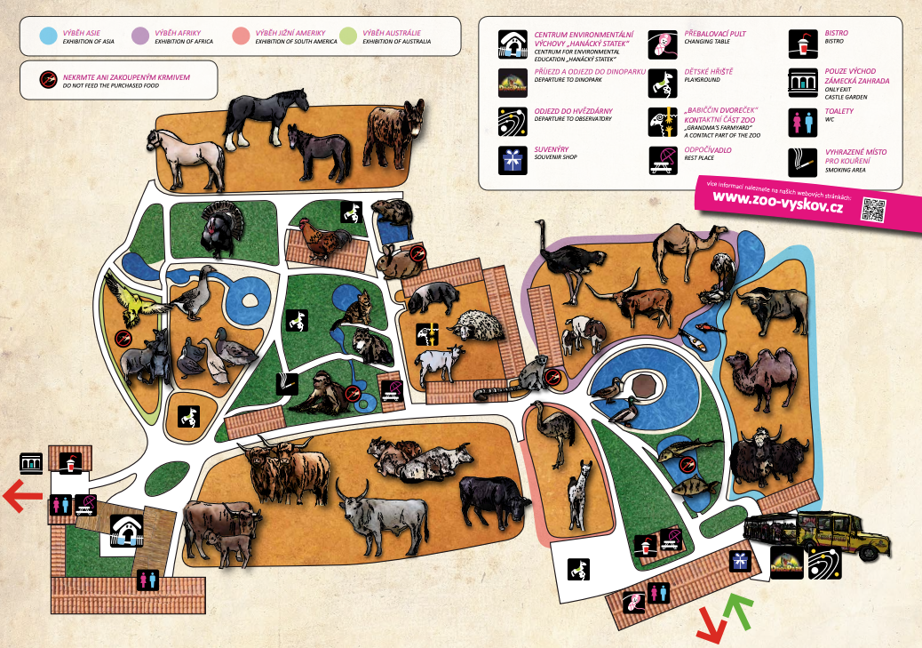 Zoo Vyškov chová na 1226 zvířat v přibližně 122 druzích na ploše asi 4 ha. V areálu bylo najdete dětské hřiště, venkovní terasu s občerstvením, restaurace a parkoviště. Nová expozice Austrálie - v průchozí voliéře mohou návštěvníci pozorovat australské papoušky a klokany parma z bezprostřední blízkosti a bez bariér. Nejpočetněji je zde zastoupen papoušek vlnkovaný, chovaný v nejedné domácnosti...
