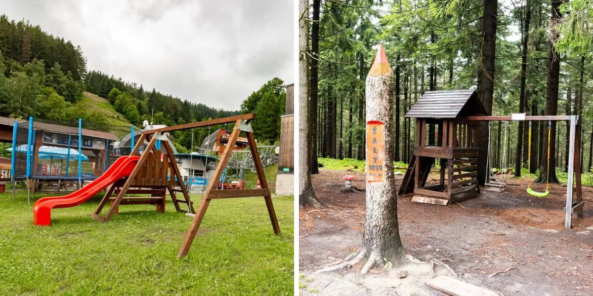 U spodní stanice lanovky se chvilku určitě zdržíte, mají tu totiž dětské hřiště s trampolínou. Na další hřiště se pak děti mohou těšit k rozhledně.
