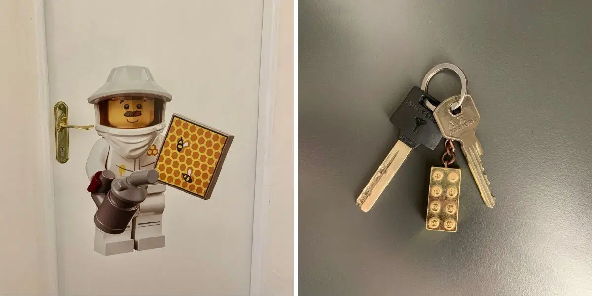 Dveře pokojů kromě čísel rozlišují i LEGO postavičky a také na klíčích tu mají LEGO kostičku.