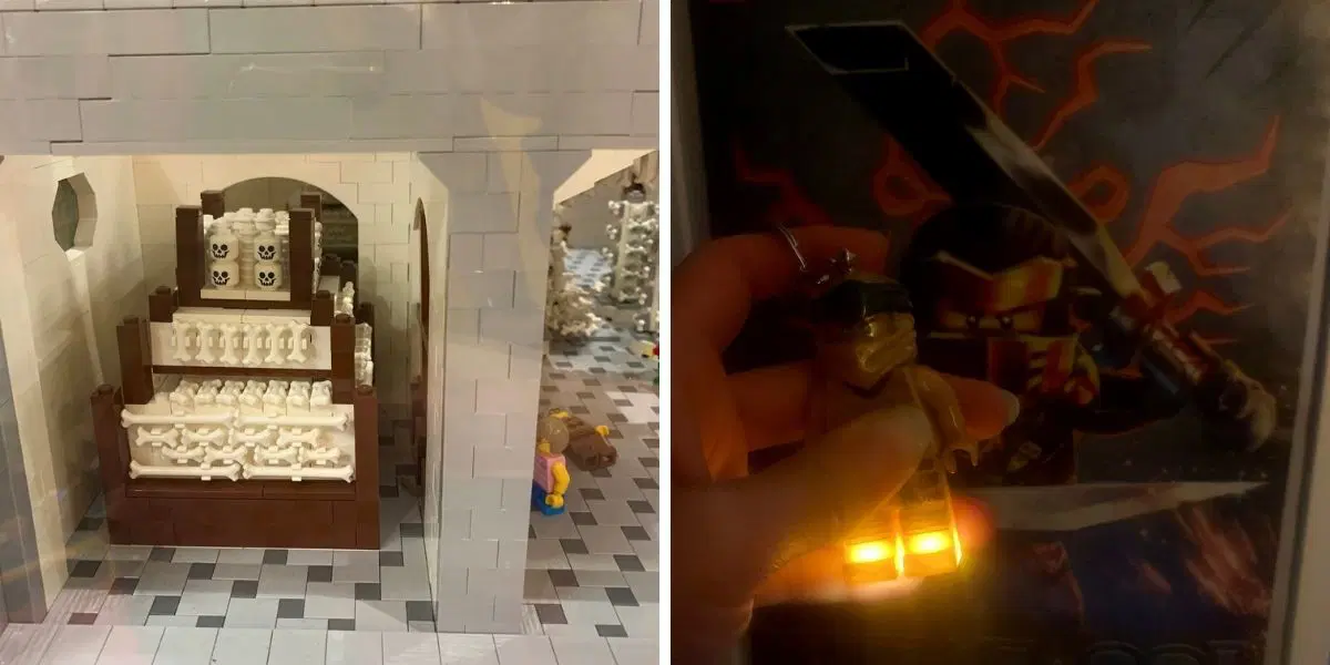 Po návratu na hotel nás zase zcela pohltilo LEGO. I když muzeum během pobytu projdete mnohokrát, vždy objevíte něco nového. Třeba kostnici, kde jeden z LEGO návštěvníků pravděpodobně omdlel strachy. Pro noční zkoumání LEGO muzea i jeho okolí se nám hodil svítící LEGO Ninjago přívěšek na klíče.