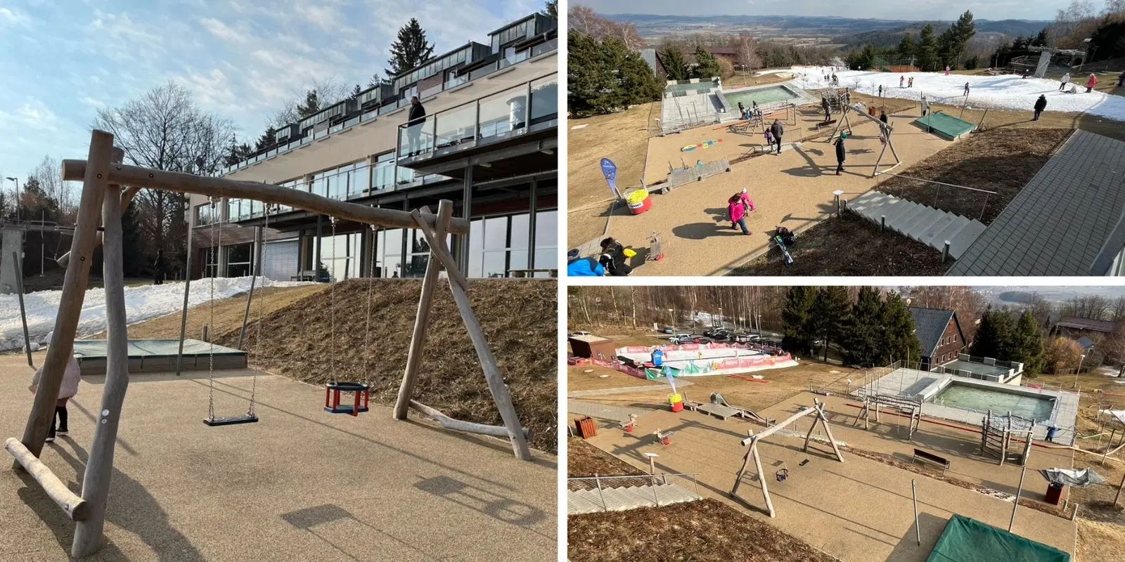A další spokojenost následovala na dětském hřišti přímo u hotelu. Prolezla a vyzkoušela všechny atrakce. A kdyby bylo léto, věřím, že by se ve venkovním bazénu ráchala ještě teď. Skvělé je, že s většími dětmi nemusíte na hřišti postávat. Vytvořili zde totiž systém teras, kdy na horní terase mohou odpočívat rodiče a přitom pozorovat o "patro" níž hrající si potomky.