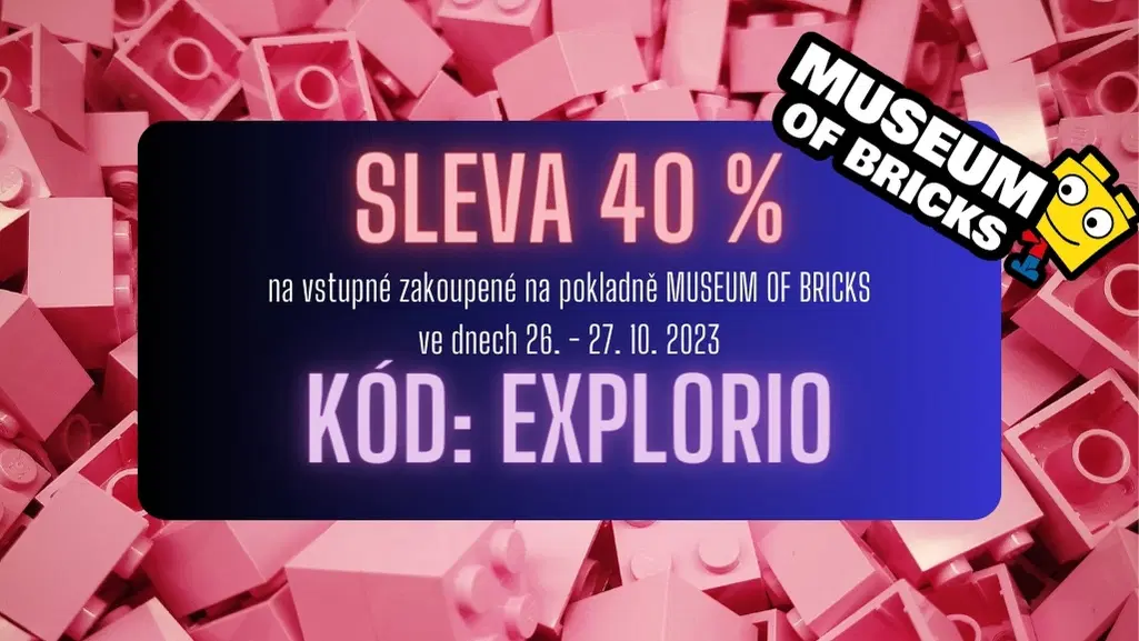Vyrazte s dětmi ve čtvrtek nebo pátek 26. - 27. 10. do jedné z pěti poboček MUSEUM OF BRICKS, na pokladně řekněte kód "EXPLORIO" a máte slevu celých 40 % z ceny vstupného. Uvidíte největší sbírku stavebnice LEGO na světě. Všechny pobočky MUSEUM OF BRICKS najdete zde.