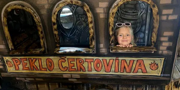 Na našich FB stránkách Cestujeme s dětmi a Hory s dětmi pravidelně soutěžíme o vstupenky i pobyty. Děkujeme výherkyni pobytu v netradičním hotelu Kocourkov se vstupem do Pekla Čertovina za obsáhlou recenzi a spoustu fotek. Jaký pokoj si vybrali? A jak se dětem líbilo v Pekle? Z výhry pobytu jsme byli nadšeni, na cestu za čerty jsme se vydali z nedalekých Pardubic, na místo jsme dojeli za 45 minut. Peklo Čertovina se nachází v lesích Medkovy Kopce, cestou nás vedly cedule. V hotelu Kocourkov je každý pokoj úplně jiný, my si vybrali a domluvili už před příjezdem pokoj " Autosalon". Tento pokoj jsme zvolili, jelikož taťka nám v autech pracuje, tak aby se cítil jako doma. Po otevření vstupních dveří jsme jen žasli. Dokonalé, krásné, vše do posledních detailů propracované. Postele, skříně ze dřeva, krásná malba na zdi, volanty, klíče, matice jako ozdoba na stěnách. Opravdu jako v autosalonu. V pokoji byla luxusně vybavená koupelna se sprchou i vanou a základní kuchyňka s kávovarem. Během pobytu jsme měli možnost navštívit vířivku, vzdálenou asi 5 min pěšky od ubytování. A pro hosty tu mají i venkovní bazén. Počasí koupání úplně nepřálo, tak se dcera jen rychle smočila a rychle na pokoj. Děti u hotelu zabaví dětské hřiště, dva skákací hrady a řetízkový kolotoč. Na celé hřiště je vidět z obrovské terasy, kde si můžete vychutnat kávu a přitom mít dohled nad dětmi. Ty naše odbíhaly od zmrzlinového poháru na skákačky a nechtěli ani jít na večeři. Ta proběhla formou "Obžerství". Číšník nám ukázal náš stůl, informoval nás o doplatcích a mohli jsme hodovat. Výběr jako v hotelu s all inclusive. Od masa, zeleniny, příloh, ovoce, dortíků, jednohubek, až po tatarák či kýtu. Páteční večery tu pravidelně pořádají čertovskou zábavu. DJ za mixážním pultem a čerti s dětmi dokázali zvednout z lavic a židlí i nás starší. A proběhla i tombola o čertovské ceny. V Pekle Čertovina už jsme v minulosti několikrát byli, čerti nás dokonce poznali a tak si mladší dítko vyzkoušeli, jak se zlepšilo a co je potřeba ještě dotáhnout ke spokojenosti maminky. Po protančeném večeru se nám spalo krásně a ráno nás čekala bufetová snídaně s obrovským výběrem. Po snídani jsme předali s velkým díky pokoj a čekala nás závěrečná prohlídka pekla. To bylo to nej, co se týká zábavy. Hodinový program peprných slov, srandy, zkoušení dětí i dospělých v neskutečných prostorách pod zemí. Do detailu zpracované peklo, jeho průřez, vše jen dřevěné a kovářské zpracování. Velmi věrohodné. Vůbec se nám nechtělo odjíždět. Ještě jsme si prošli známou stezku, která Vás přivede k Peklu, dozvíte se spoustu zajímavostí z úkolů a cesta vám tak líp uteče. Zastávka je u čarodejnice Bromildy, která Vám dá vypít hadí jed:-)) Škoda, že zrovna nejezdil Konibus, ten máme moc oblíbený. Jde o projížďku čertovským povozem s koňmi. Cestu děti plní úkoly a tatínci kydají hnůj. Pobyt v Pekle můžeme na 100 % doporučit rodinám s dětmi i bez nich. Čerti jsou dobrá parta, skvěle se doplňují. Program přizpůsobují věku dětí, rozhodně nechtějí děti stresovat, ale chtějí spíše pobavit. A to i dospělé. Láká vás výlet za čerty? Přečtěte si ještě další informace o Peklu Čertovina a naplánujte si svůj pobyt v hotelu Kocourkov .