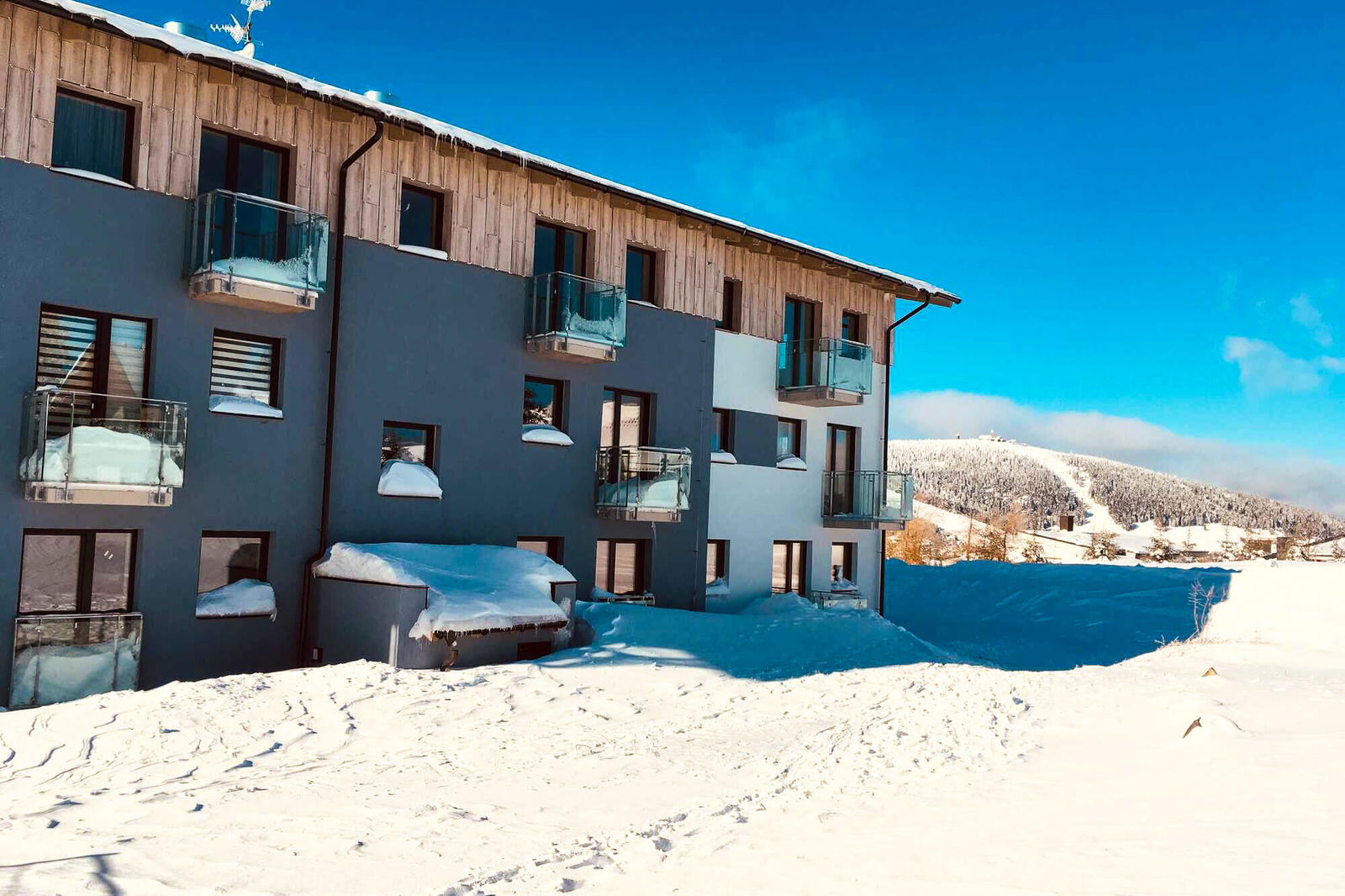 Jen 300 metrů na sjezdovky a v létě ráj pro nejen rodinnou cyklistiku. Aparthotel Klínovec Views vám nabízí perfektní služby a okolí plné nejrůznějších atrakcí pro rodiny s dětmi. Až vám přestane zábava na české straně stačit, přehoupněte se přes kopec do německého Fichtelbergu a o zábavu máte postaráno.