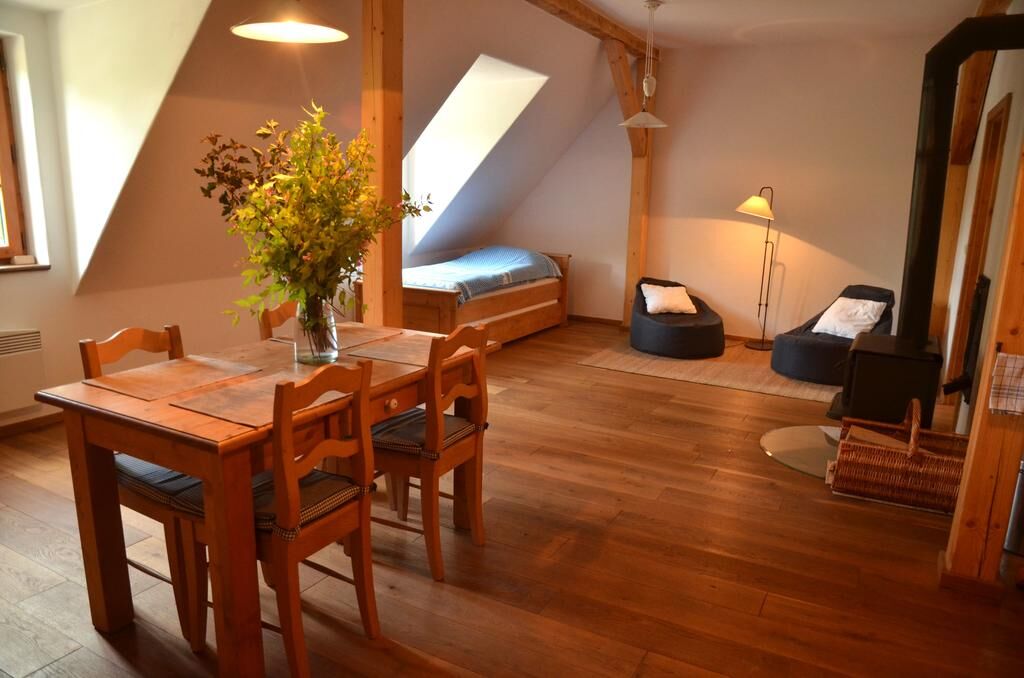 Apartmány Kovárna najdete ve Zdoňově v Adršpašsko-teplických skalách. Ubytovat se můžete ve 4 krásných apartmánech s vlastní plně vybavenou kuchyň, krb a koupelnu se sprchou a WC. Druhou místnost pak tvoří samostatná ložnice. Pro nejmenší mají dětskou postýlku a židličku a pohrát si mohou na dětském hřišti před dome...