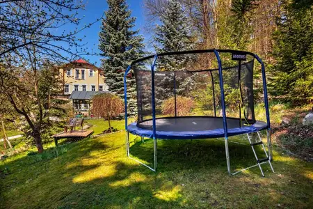 Rodinný hotel SwissHouse je obklopený pohádkovou krajinou lázeňských lesů a parků a najdete ho v klidné části Mariánských Lázní. Děti jistě ocení místní koutek, kde si můžou hrát od rána do večera. Venku na ně čeká rozsáhlá zahrada s trampolínou a houpačkou.