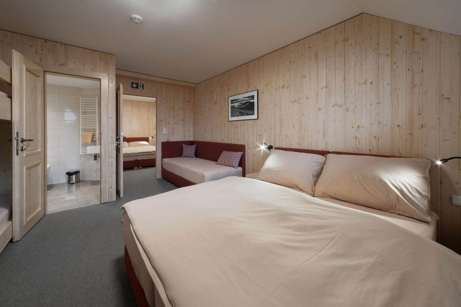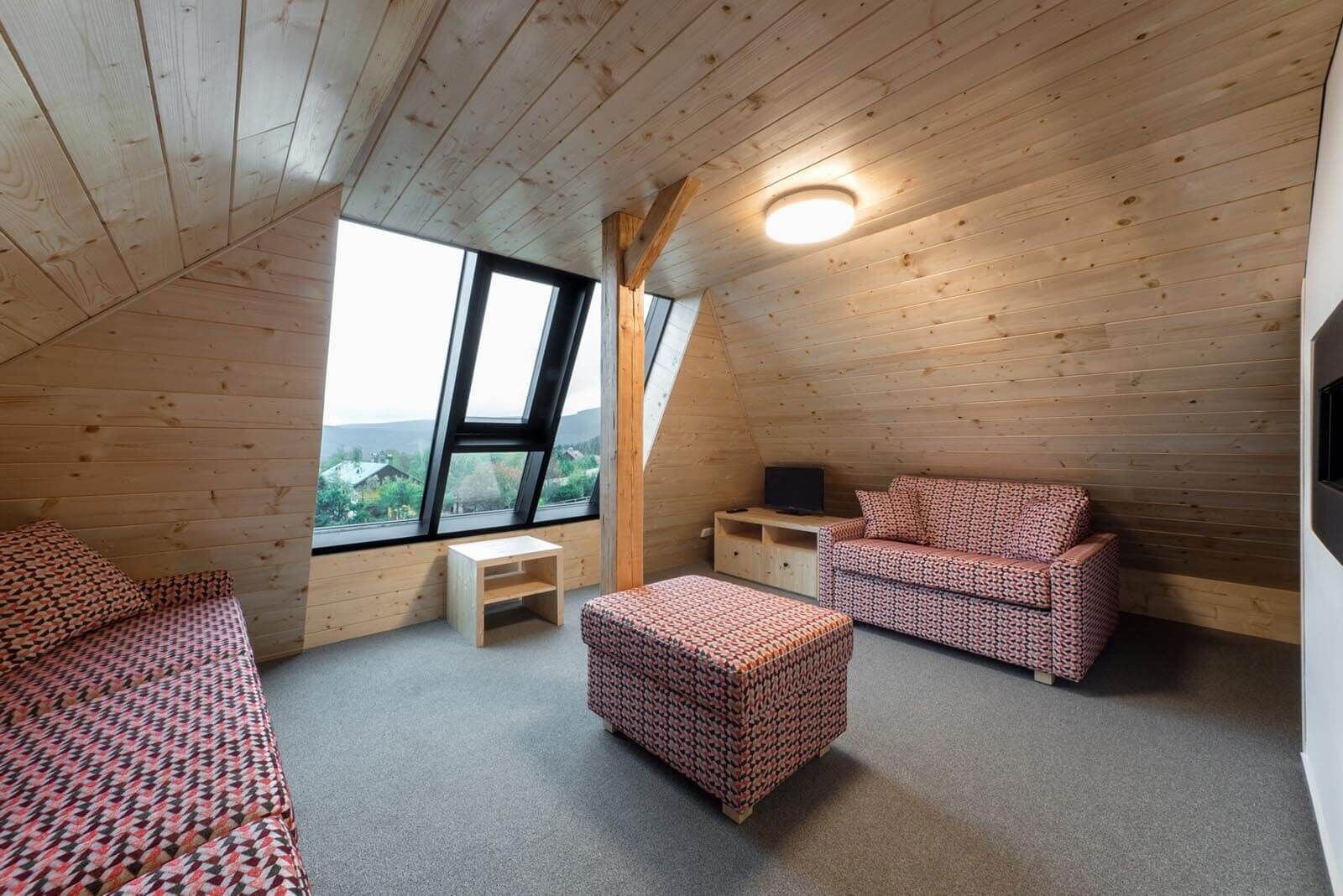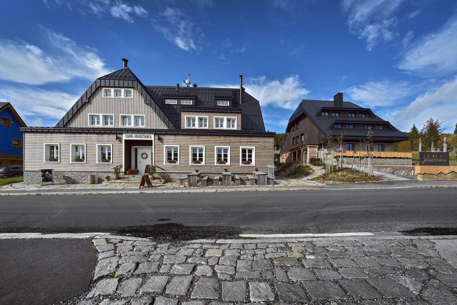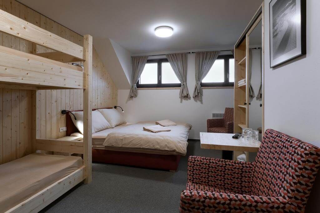 Chata Jeřabinka v Krkonoších nabízí ubytování v těsné blízkosti sjezdovek a v bezprostřední blízkosti chaty Hradečanka, kde je ubytovaným hostům k dispozici restaurace. Rodiny s dětmi se mohou těšit na vnitřní dětskou hernu, jejíž součástí je i společná kuchyňka pro přípravu drobných pokrmů a svačinek i ohřev příkrmů pro nejmenší návštěvníky ubytování.
