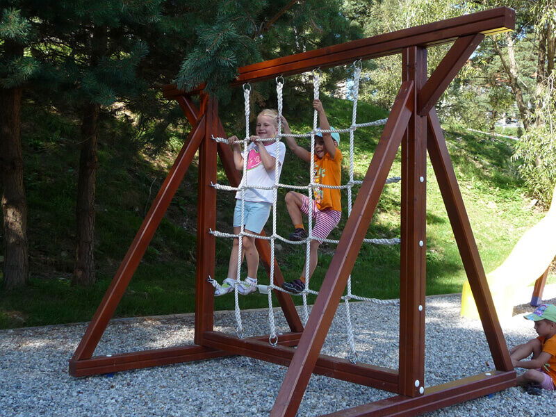 Zažijte nezapomenutelné chvíle rodinné dovolené s dětmi v Ernesta Club Lipno. Slyšíte-li dětský smích, který slyšíte po celém areálu? To proto, že hned před domem je dětské hřiště se skluzavkou a houpačkou. Starší si mohou zahrát míčové hry na multifunkčním hřišti.