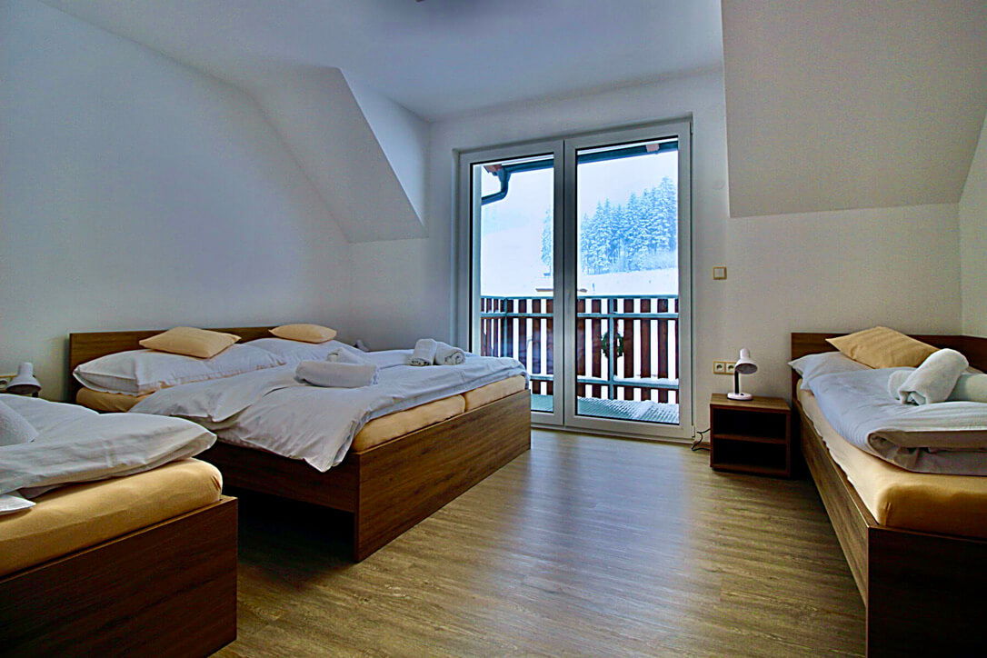 Tři moderní apartmány jsou vhodné i pro velké rodiny. Do každého z nich se vejde až 10 osob. Okolí láká k výletům pěšky i na kolech. A v zimě si užijete blízký skiareál Buková hora.