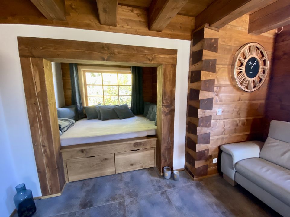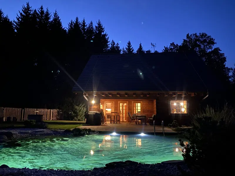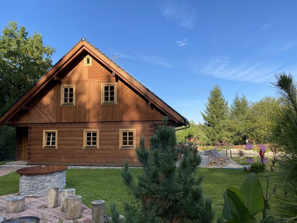 Milovníci roubenek, cyklonadšenci i vy, co rádi odpočíváte uprostřed lesů, nastražte uši, tohle je totiž jedno z míst, které patří na váš rodinný wishlist. Jen pár kroků od lesa plného praváků leží stylová roubenka. Místo pro vaši další rodinnou dovolenou. Tady bude čerstvě uvařená káva chutnat úplně jinak. S výhledem na soukromé jezírko se slanou vodou, ve kterém se v horkých letních dnech už od rána čvachtají vaše ratolesti.